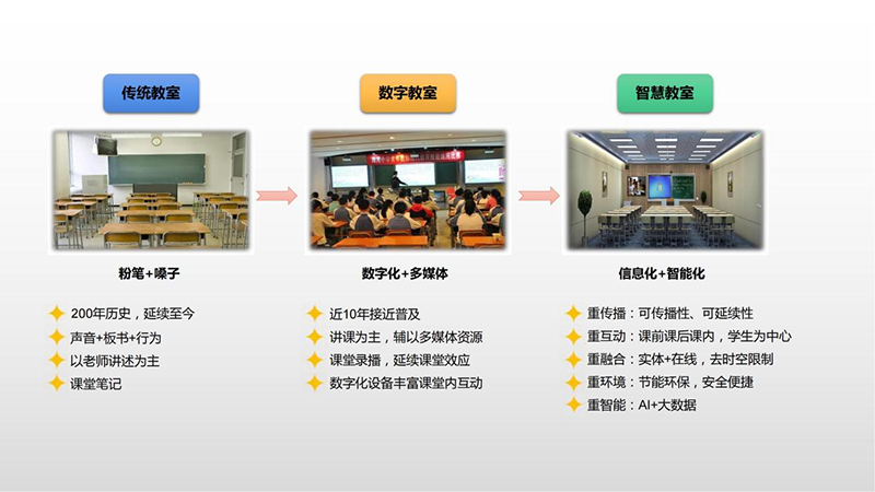 以云計算、大數(shù)據(jù)挖掘、物聯(lián)網(wǎng)、移動互聯(lián)等為標志的信息技術快速發(fā)展及在教育教學領域的應用,使得我們傳統(tǒng)教室也漸漸從普通教室轉變?yōu)橹腔坌徒淌,從單一技術的教室應用轉變?yōu)榉杭夹g的教學環(huán)境。